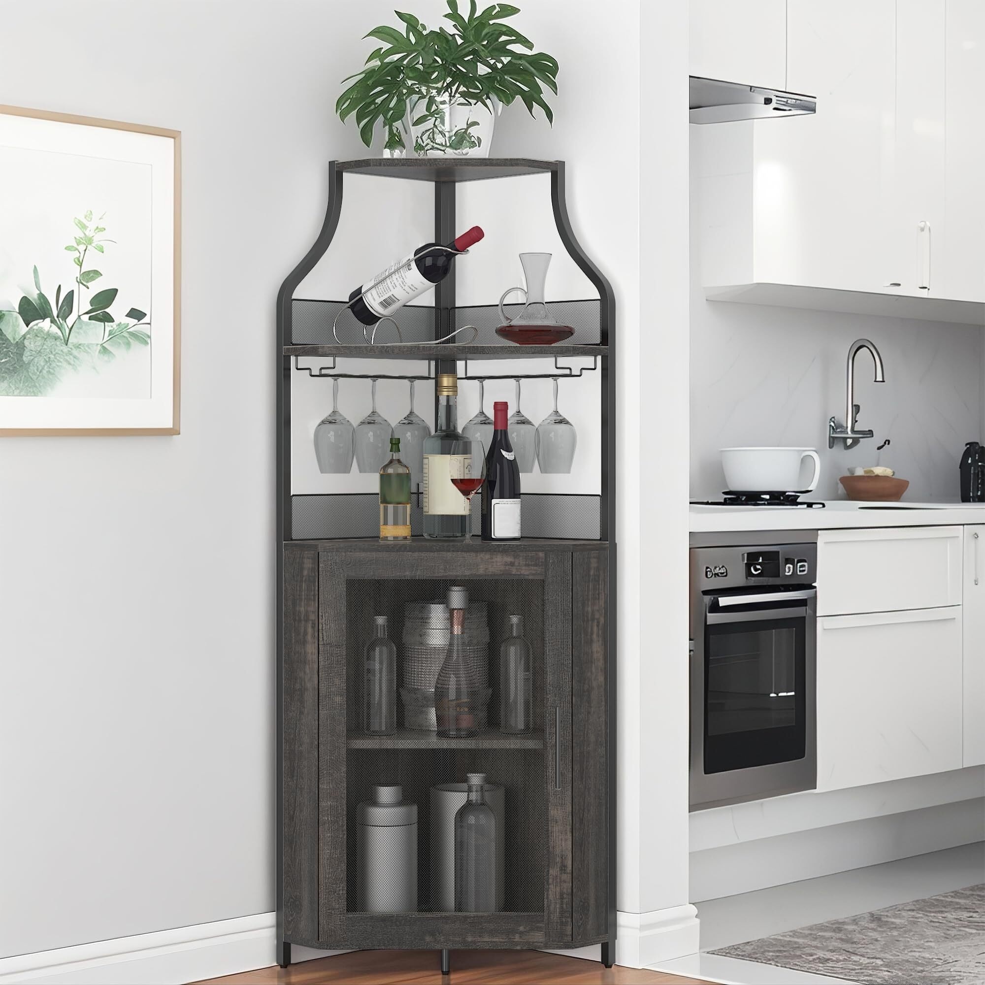 Corner Bar Cabinet - 61" Wine Bar Cabinet and Glass Holder 5-Tiers Storage
