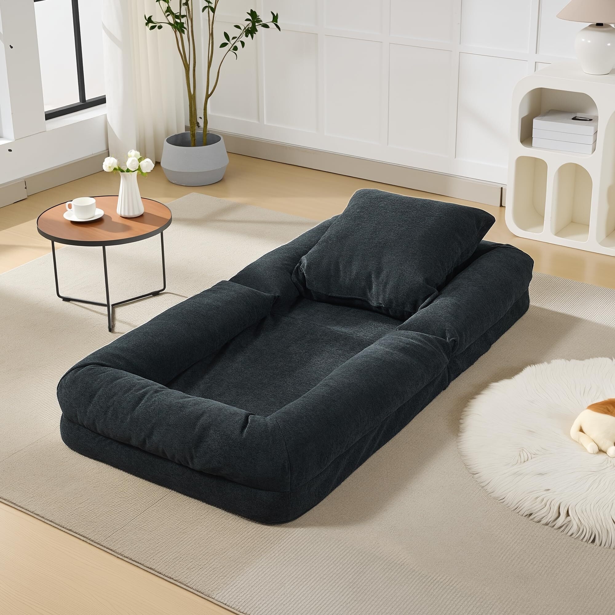 Upholstered Human Dog Bed for Adults and Pets, Foldable Lazy Sofa Bed with 5 Adjustable Position, Includes 2 Soft Pillows