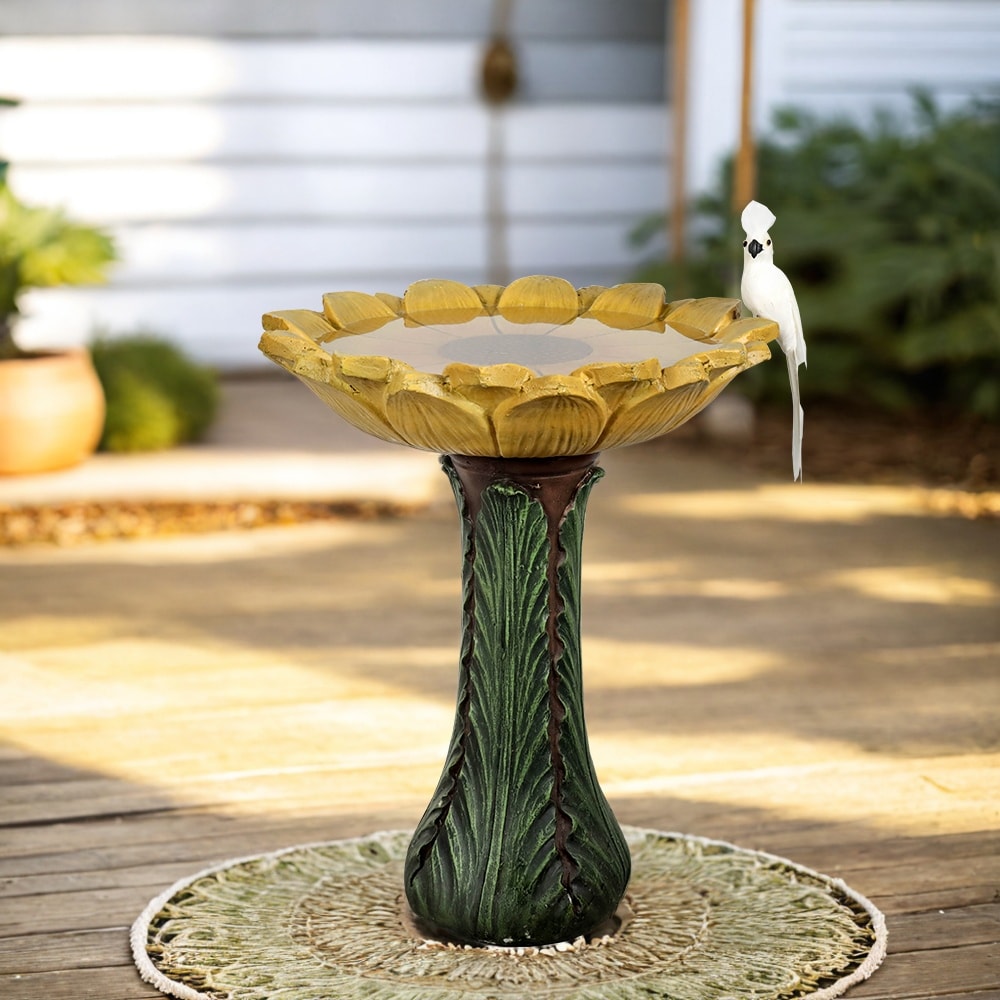 24.4in Outdoor Concrete Sunflower Bird Bath with Pedestal for Garden
